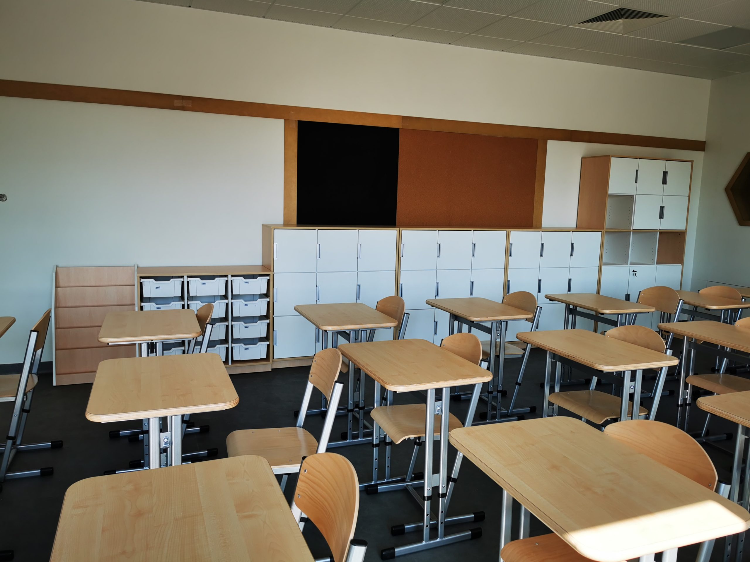 Dla uczniów wybrane zostały regulowane stoły IN-R oraz ergonomiczne krzesła T, a dla małych dzieci krzesełka Filipek. Bogate i profesjonalne wyposażenie zyskała także sala chemiczno-fizyczna. Oprócz dygestorium i szafy chemicznej wyposażona została w stoły Mila z odpornym blatem HPL.