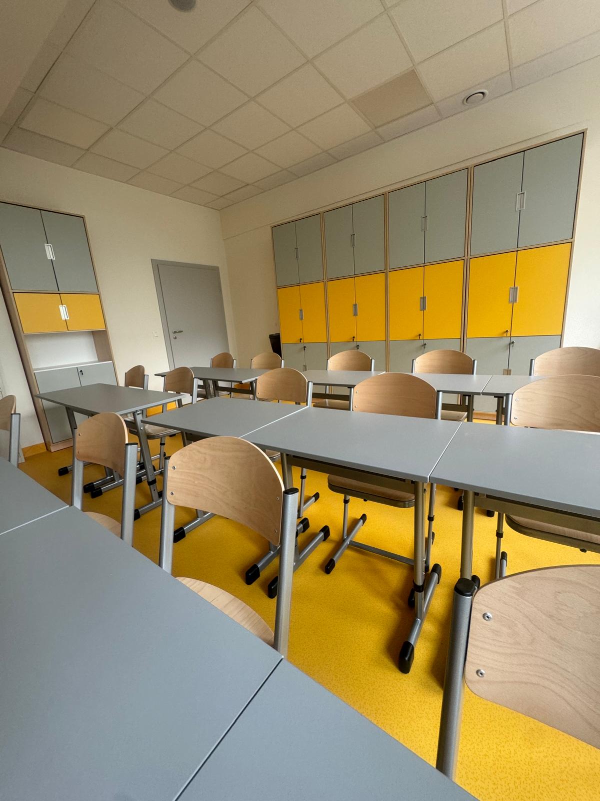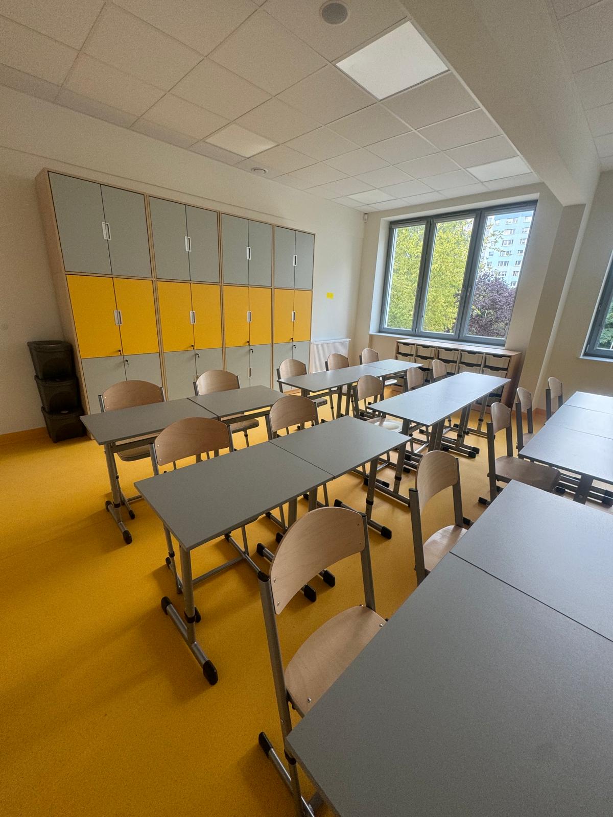 Prostota i funkcjonalność we wnętrzach szkolnych.